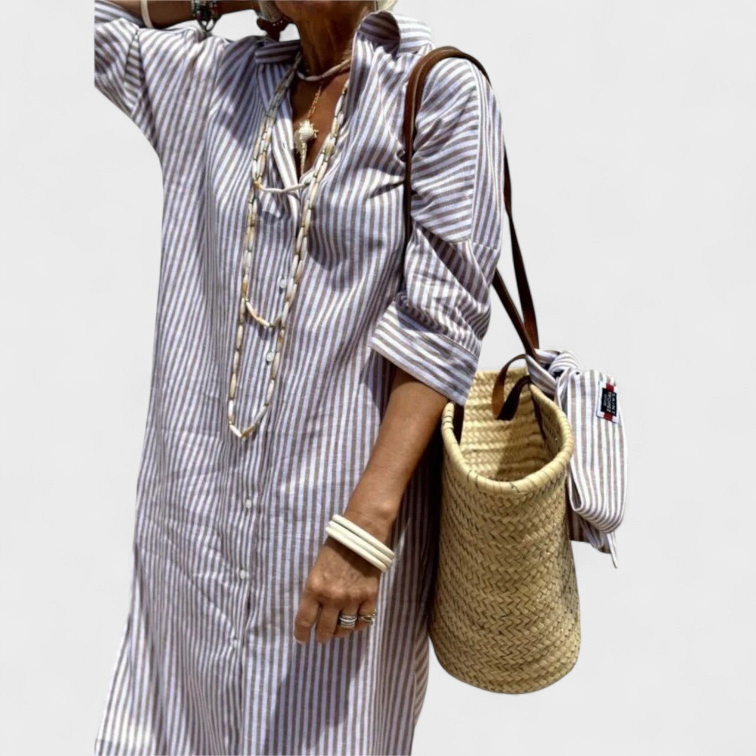 Découvrez le Denise, une robe rayée qui offre la combinaison idéale de sophistication et de confort. Avec un design classique et un col élégant, cette robe est parfaite pour toutes les occasions, que ce soit au bureau, pendant votre temps libre ou pour un événement spécial. Avec sa coupe décontractée et sa polyvalence, c'est le basique dont votre garde-robe a besoin.